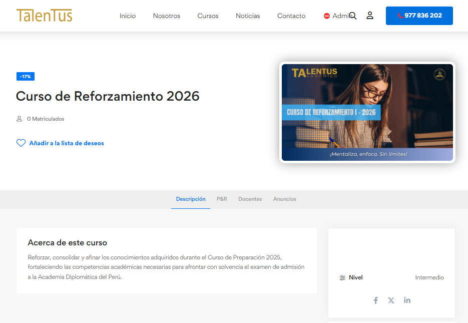 Esta propuesta constituye un espacio académico estratégico, pensado para que los postulantes inicien el 2026 con bases sólidas y mayor seguridad en su camino hacia el Servicio Diplomático de la República. Más información se encuentra disponible en el portal institucional: https://talentusacademico.com/.