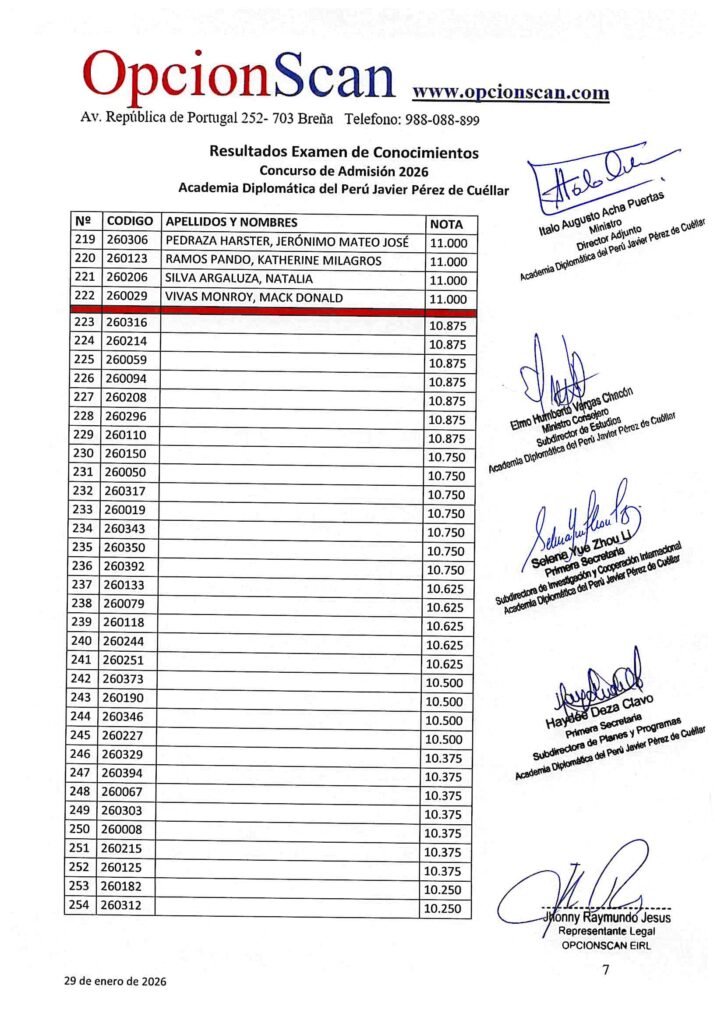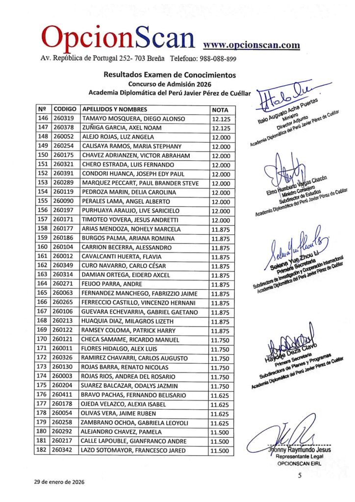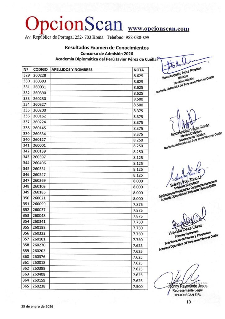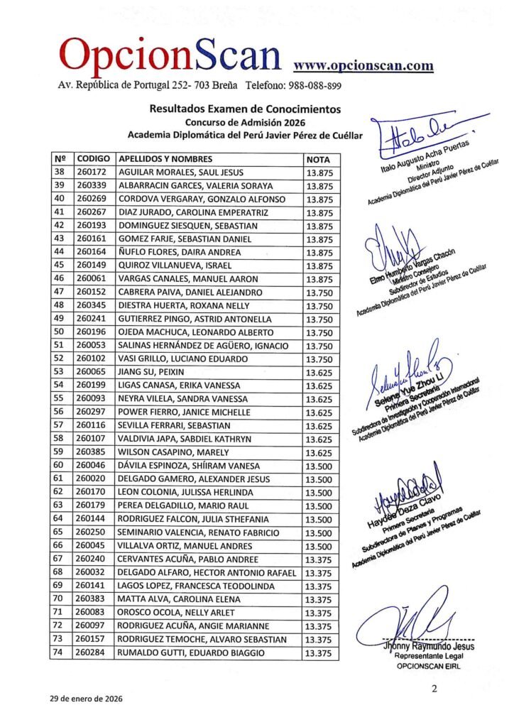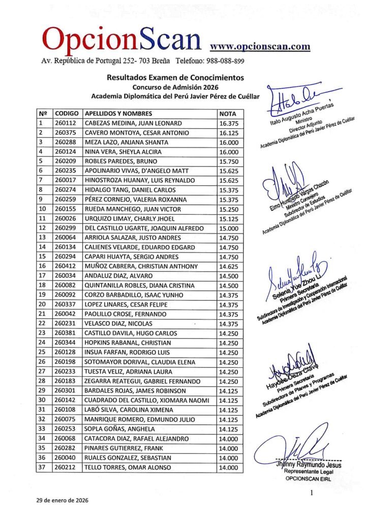 Resultados del Examen de Conocimientos del Proceso de Admisión 2026 a la Academia Diplomática del Perú