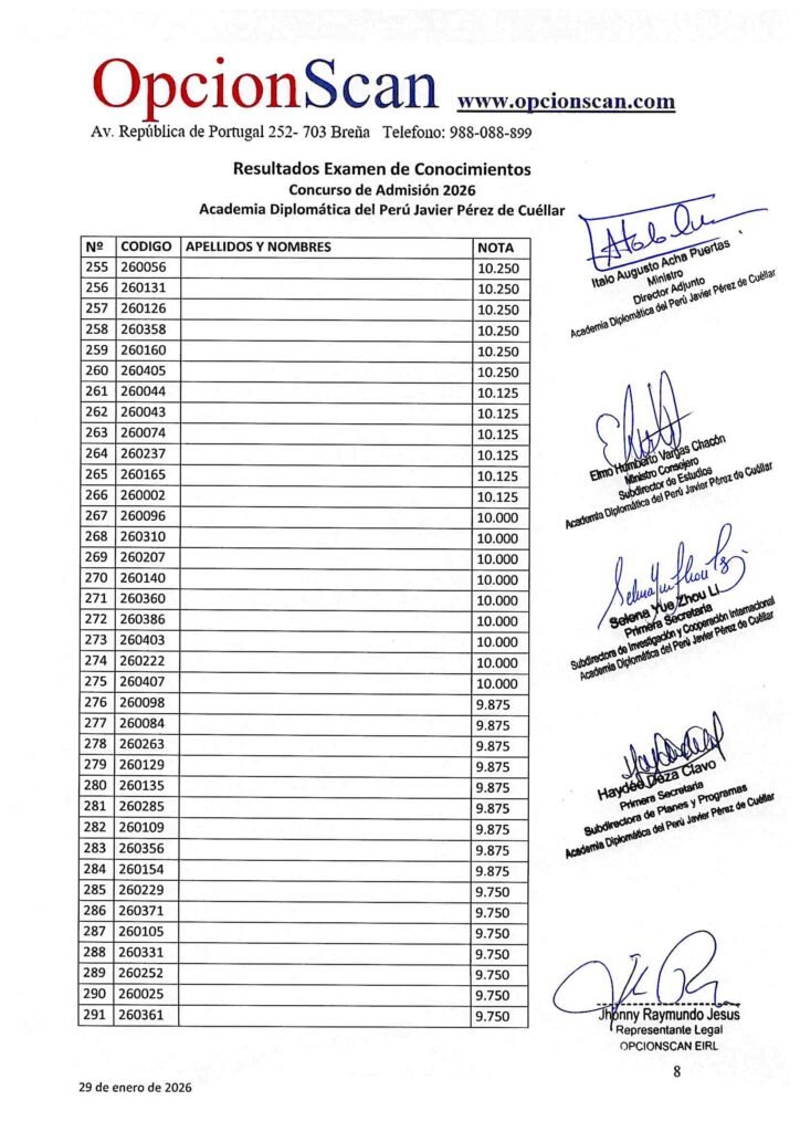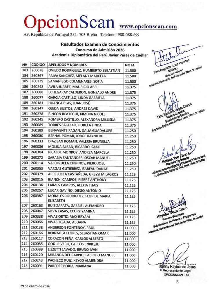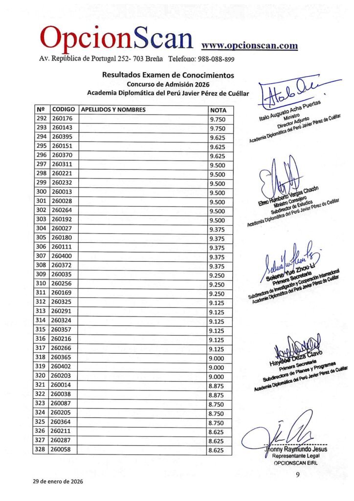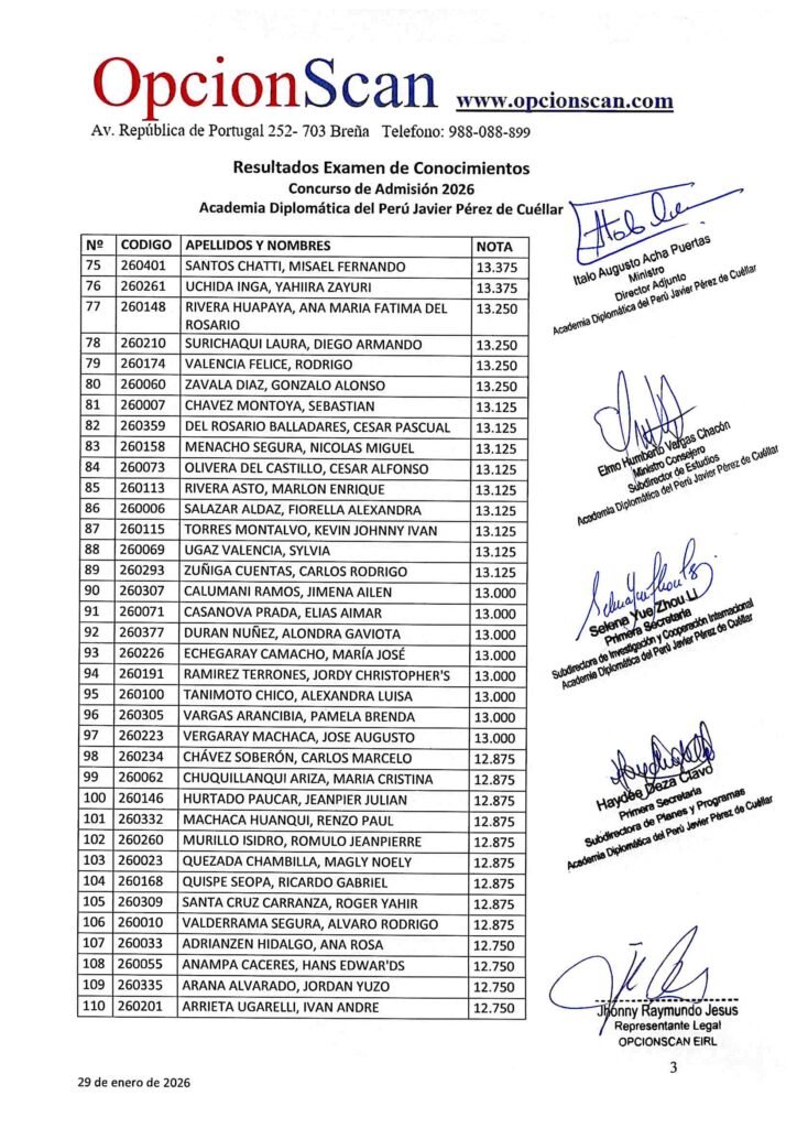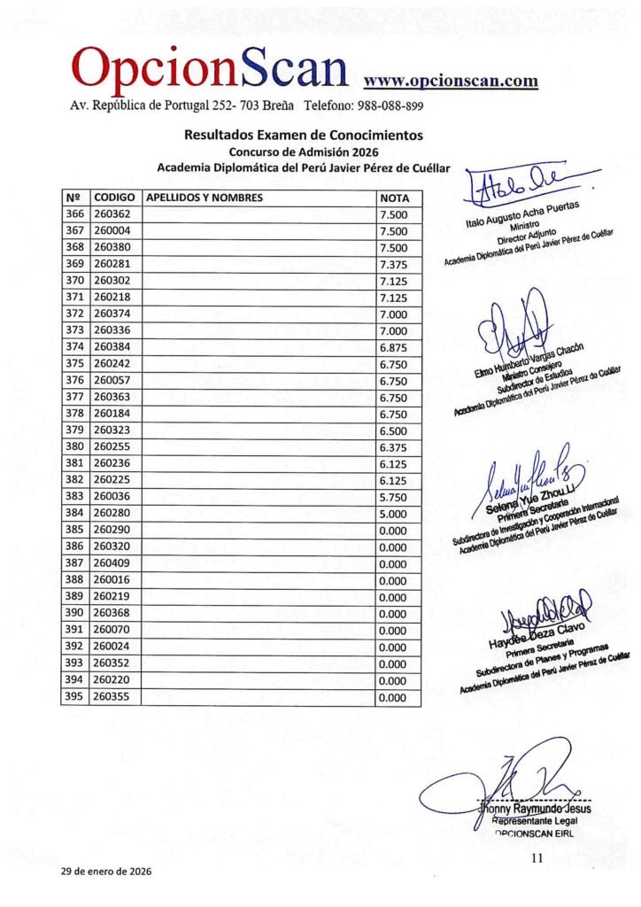Resultados del Examen de Conocimientos del Proceso de Admisión 2026 a la Academia Diplomática del Perú